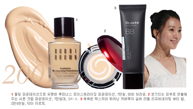 2007 skin texture ‘연예인 표 광 피부’의 비밀. 브랜드 행사장에 나타난 여자 연예인들 특유의 맨 얼굴인 듯 자연스러우면서도 광이 반짝이는 피부의 비밀병기가 바로 에스테틱을 중심으로 판매되던 BB크림이라는 입소문이 돌기 시작했다. 독일제 BB크림이 온라인상에서 급속도로 퍼져 나갔고 국내 브랜드에서도 하나 둘씩 BB크림을 출시. 건강해 보이는 피부 광 열풍을 타고 바비 브라운에서 ‘물광 파운데이션’이라는 기발한 닉네임을 단 루미너스 파운데이션을 출시해 소위 ‘대박’이 났다. 그 후 물광, 윤광, 빛광, 실크, 밍크 등의 텍스처를 강조한 피부 표현이 지금까지도 주목받고 있는 중. |