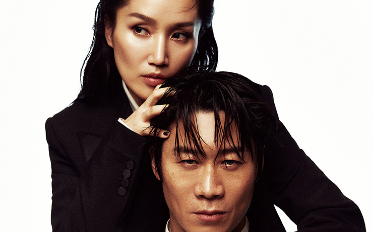 박보경이 입은 포켓 디테일의 재킷과 수트 팬츠는 모두 Tod’s. 싱글 이어링은 Amondz. 진선규가 입은 워크 셔츠와 워크 팬츠 모두 Alexander McQueen. 선글라스는 Giorgio Armani by Essilor Luxottica.