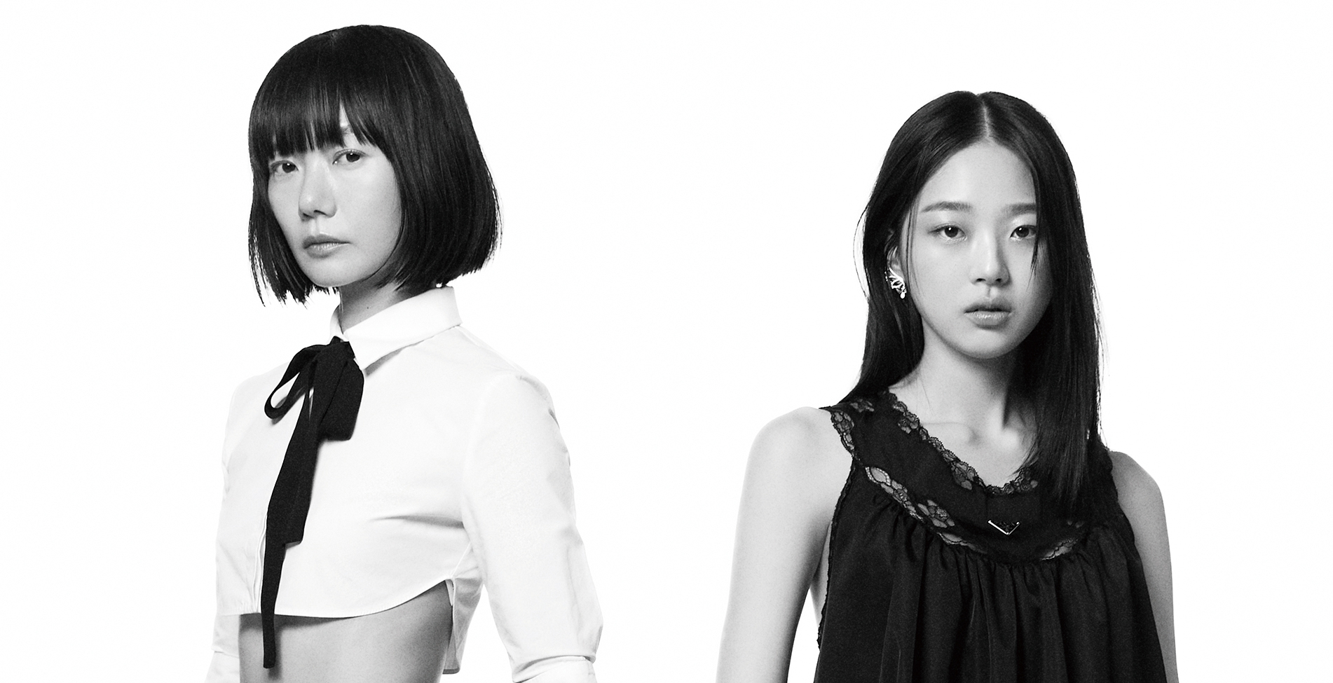 배두나가 입은 크롭트 셔츠와 맥시 롱스커트, 리본은 모두 Valentino. 링은 모두 Korloff. 김시은이 입은 원피스와 슈즈는 모두 Prada. 이어링과 링은 모두 Stephen webster.