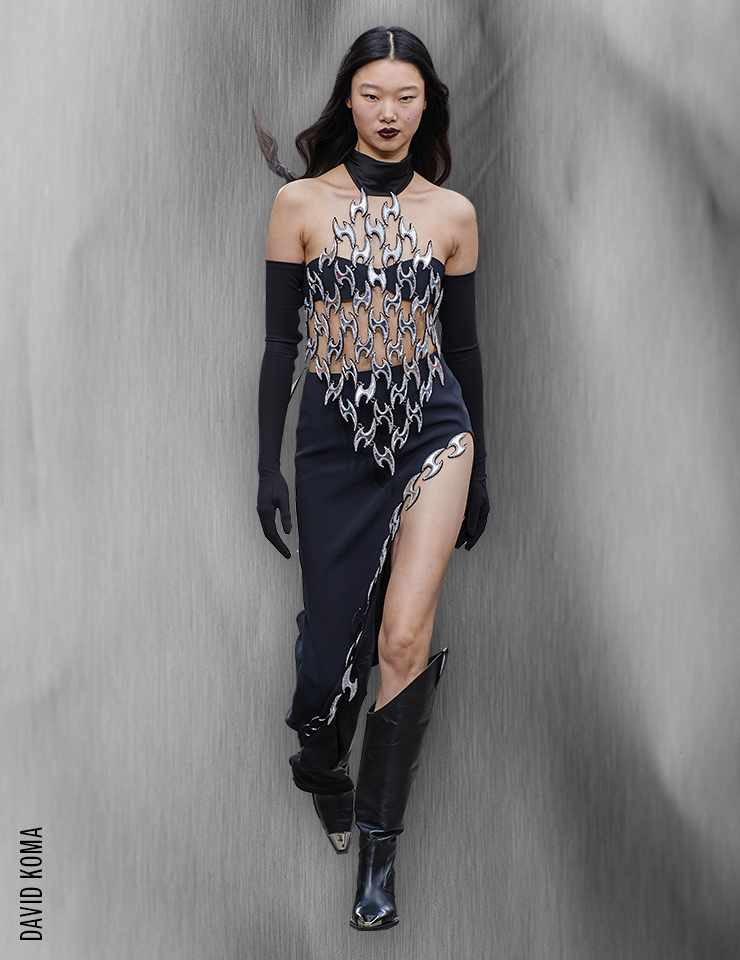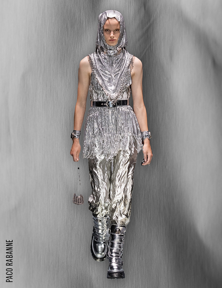 갑옷을 입은 듯 무장한 여전사들이 런웨이를 누볐다. 중세시대 기사를 떠올리게 하는 사슬 디테일과 몸에 맞춘 듯 유연하게 움직이는 메탈 플레이트가 곳곳에 존재감을 드러낸 것. 차갑고 단단한 금속에서 뿜어져 나오는 강렬한 카리스마는 두려움 없이 앞으로 나아가는 강인한 여성의 면모를 보여준다. armor for heroines