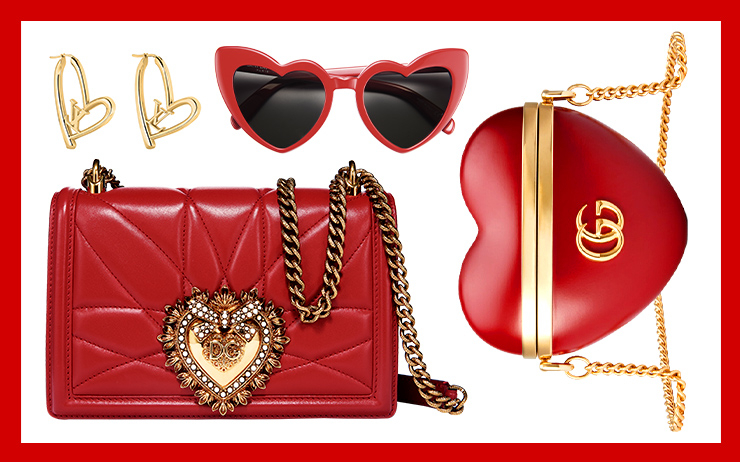 메탈 소재 부케 모양의 이어 클립과 ‘RV 러브 클러치 마이크로’ 백