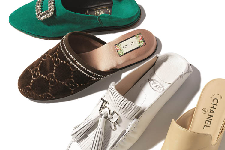 벨벳 소재의 ‘스트라스 베이비 비브’ 로퍼는 모두 Roger Vivier. 실크 슬립 드레스는 Jisoolee.