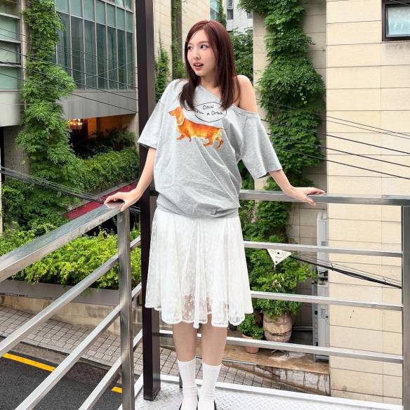몸에 꼭 맞는 핏한 카디건의 유행이 지속되고 있죠. 민니 역시 집업 형식의 스키니한 카디건을 오픈해 입고, 데님 소재의 미니스커트로 가볍고 산뜻하게 스타일링 했습니다. 민니 @min.nicha