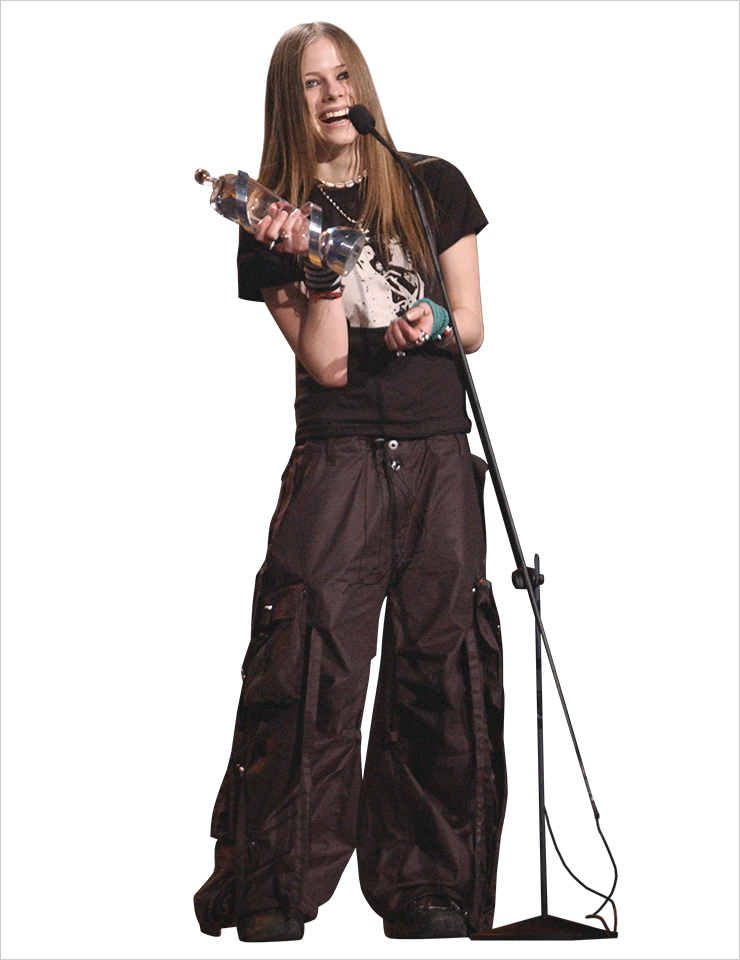 이토록 ‘쿨’한 시상식 룩이라니! 캐나다 음악상인 주노상을 받은 2003년, 큼직한 패러수트 팬츠와 주얼리로 포인트를 준 모습.