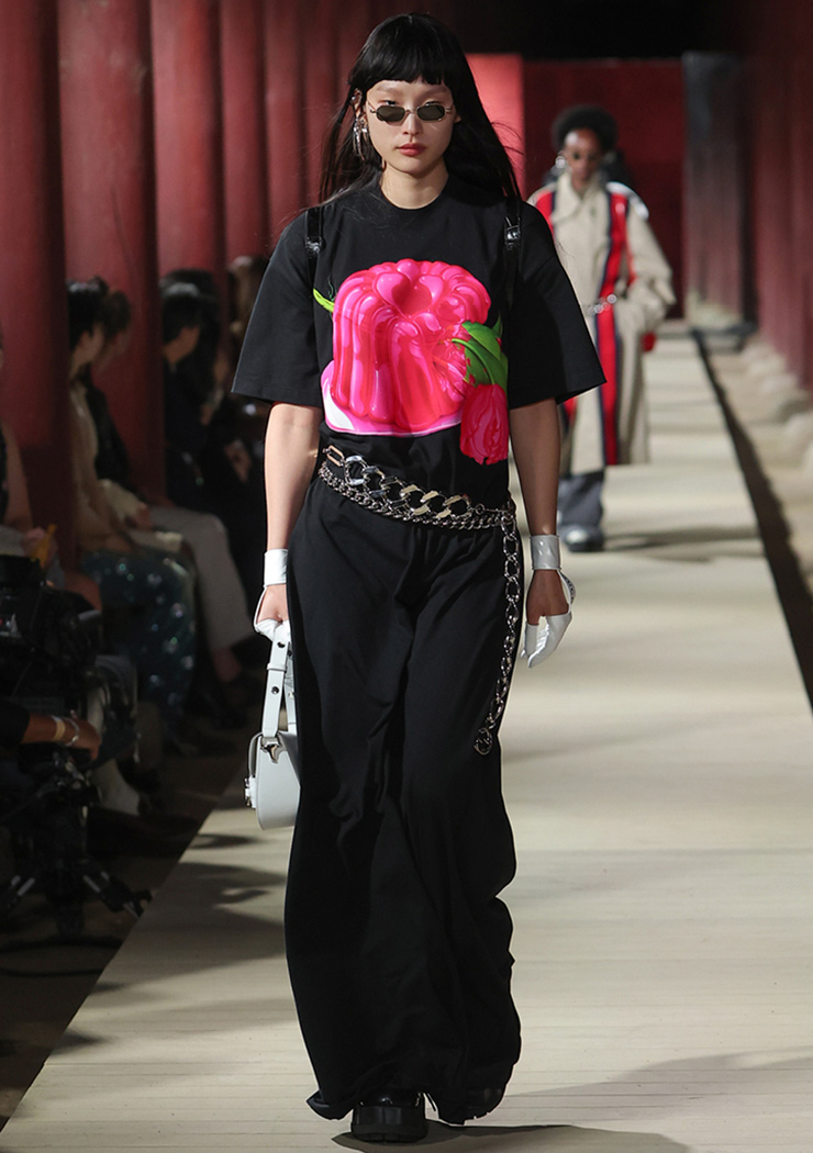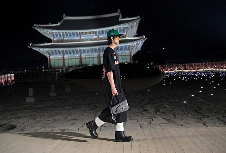 각 시대와 전통의 교류를 통해 진화한 102년의 하우스 헤리티지와 영감을 준 한국 문화 간 상호작용을 표현한 이번 패션쇼는 강렬한 북소리로 시작을 알렸다. 경복궁 경의전에서만 느낄 수 있는 고유의 한국적 아름다움과 강렬한 북소리를 배경으로 펼쳐진 런웨이는 감탄을 불러일으키기에 부족함이 없었다. 여기에 국내 아티스트 람 한(Ram Han)의 초감각적인 바이오모픽 모티브는 컬렉션 곳곳에 생동감을 불어넣었다