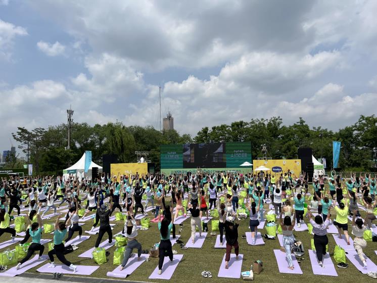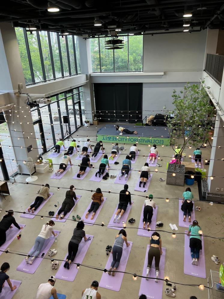 올해로 6회를 맞이한 ‘시티포레스티벌’은 다양한 운동 프로그램을 경험할 수 있는 웰빙 축제입니다. 평소 온라인으로만 접해 아쉬웠던 유명 인플루언서와 유튜버의 클래스를 눈앞에서 경험할 수 있는 기회죠. 강하나, 신지니, 흔둥이, 오드리, 김혜선, 장은실 선수, F45 김예림 코치, 에이와 요가 스튜디오, 줌바 등 올해도 화려한 강사진을 자랑했습니다. 윤성빈 선수와 ‘서준맘’으로 활동 중인 코미디언 박세미는 시티포레스티벌 2023의 특별 손님으로 행사를 방문해 일반 참가자와 운동 프로그램 및 부스 이벤트를 함께 참여했고요.