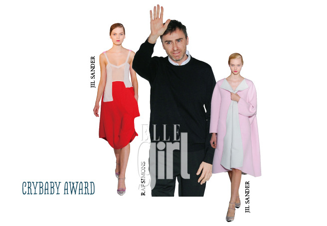 울보상의 영광(?)은 2012 F/W 컬렉션을 마지막으로 질 샌더에 작별을 고한 라프 시몬스에게 돌아갔다. 질 샌더에서 미니멀리즘의 새로운 미학과 가능성을 보여준 라프 시몬스는 2005년 크리에이티브 디렉터로 임명된 후, 인생 최고의 전성기를 누리며 ‘질 샌더보다 더 질 샌더 스럽다’는