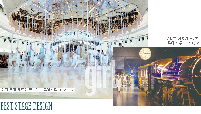 매 시즌 파리의 그랑팔레를 무대로 자유자재로 쇼장을 연출하는 샤넬의 칼 라거펠트에 대적할 만한 쇼 마스터가 나타났다. 그는 바로 루이 비통의 마크 제이콥스. 알렉산더 맥퀸과 존 갈리아노 이후 패션쇼의 서커스 같은 재미가 실종된 지금, 마크는 전례 없는 무대연출력으로 늘 새로운 것을 갈망하는 패션계의 갈증을 덜어주고 있다. 파리의 루브르 앞마당에 거대한 회전목마를 통째로 옮겨 비통 제국을 건설하고, 루이 비통 익스프레스 열차를 관중 앞에 대령하는 마법을 부리는 건 오로지 마크이기에 가능한 일!