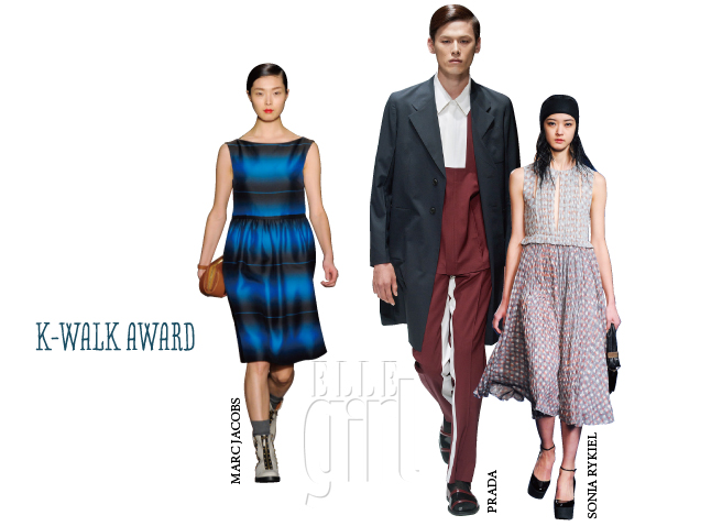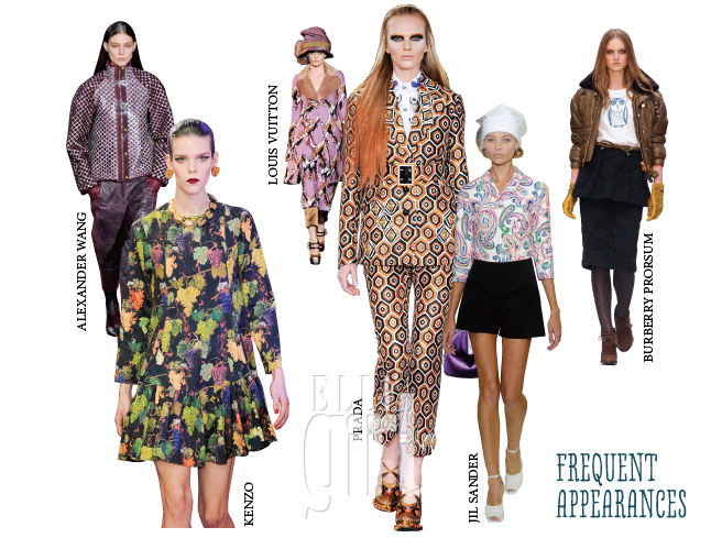 발 빠르게 최신 패션 트렌드를 전달하는 <엘르걸>에 일 년 동안 가장 많이 등장한 컬렉션은 무엇일까? 2012 S/S와 F/W 시즌을 모두 합친 결과, 총 스무 번 모습을 드러낸 프라다에게 영광의 1위가 돌아갔다. 오프닝 세레모니의 주역인 캐롤 림과 움베르토 레온 영입 후 브랜드 이미지 쇄신에 성공한 겐조가 다섯 번 차이로 2위, 미니멀리즘의 대표 주자 질 샌더가 한 번 차이로 3위에 머물렀다. 알렉산더 왕과 버버리 프로섬은 각각 열세 번씩 출현해 사이좋게 4위를 나눠 가졌다. 회전목마, 기차 등을 등장시키며 거대한 스케일의 쇼를 선보인 루이 비통은 열두 번으로 가까스로 5위에 턱걸이했다는 소식.