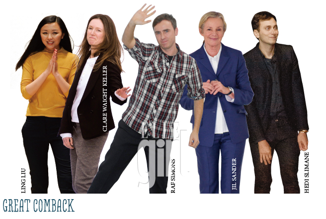 꼬리에 꼬리를 무는 패션 하우스의 크리에이티브 디렉터 체인지 소식에 바람 잘 날 없었던 패션계가 조금씩 평온을 찾아가고 있다. 2004년 질 샌더를 떠났던 질 샌더는 약 8년 만에 자신의 레이블을 찾게 됐고, 전 세계를 디올 옴므식 스키니 열풍으로 이끌었던 에디 슬리먼은 이브 생 로랑의 새로운 수장으로 오랜만에 패션계 복귀를 선언한 것. 라프 시몬스는 디올에서, 프링글 오브 스코틀랜드를 이끌어온 클레어 웨이트 켈러는 클로에에서 또 다른 패션 신화를 만들어가고 있다. 가장 파격적인 인사이동은 중국 출신의 무명 디자이너였던 링 리우와 다웨이 선의 까샤렐 크리에이티브 디렉터로 신분상승!