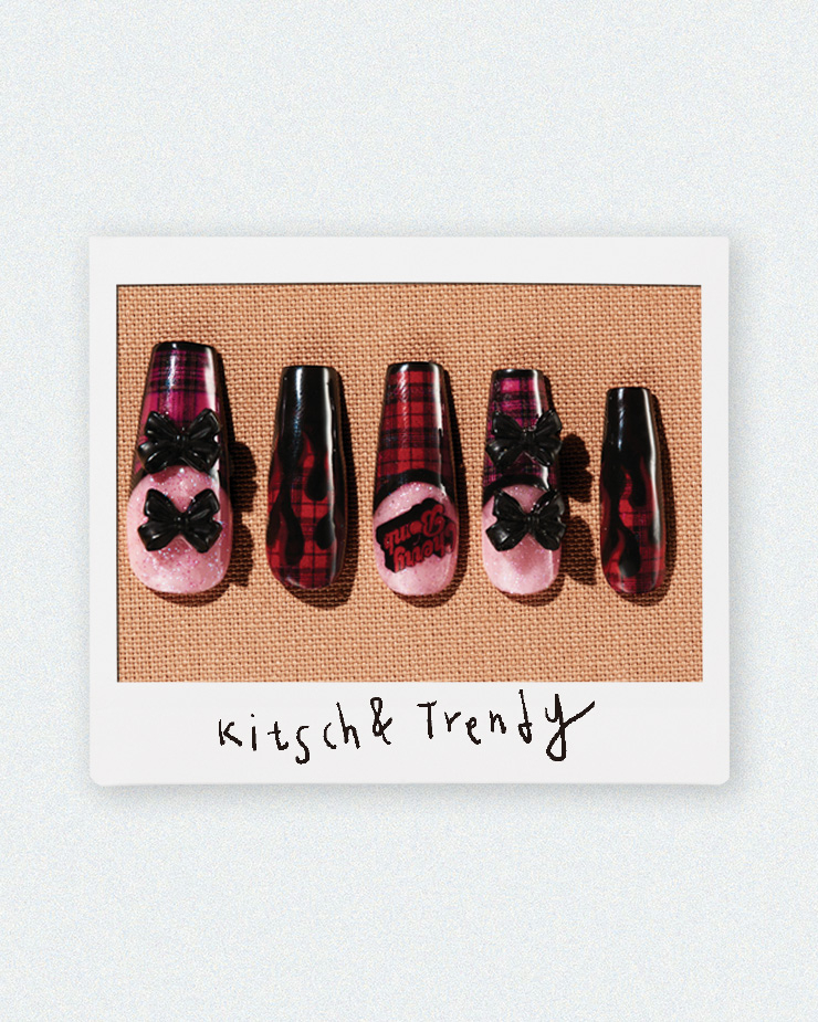 네일 아트도 패션의 일부이기 때문에 패션 트렌드를 적극 반영하면 ‘힙’한 디자인을 캐치할 수 있어요. 2023 F/W 키 컬러인 레드와 블랙 라이너를 활용해 체크 패턴을 드로잉하고, 리본 파츠를 부착해 발레코어(Balletcore)를 손끝에 입혀보세요. 누구보다 트렌디한 ‘핫’ 걸이 될 수 있을 거라 장담합니다.