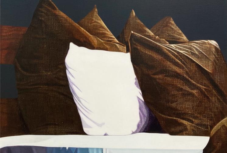 」이 그림은 사무실 내 자리 옆에 걸려 있었다. 작가는 인터넷을 떠도는 주인 없는 사진을 수집해 자르고 삭제하는 편집을 거친 후, 캔버스에 아크릴로 구현한다. 정교하게 설계된 스케치 위에 물감을 수없이 칠하고 지우기를 반복하며 쌓인 텍스처의 시간들은, 잊고 지낸 영화의
