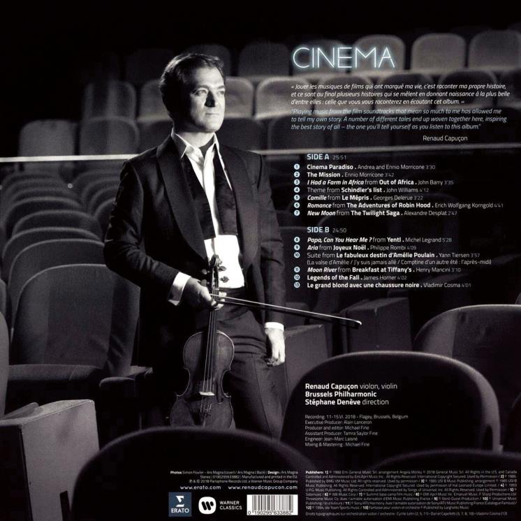 」가을이 오면 유독 비올라 음반만 찾아 듣는다. 르노 카푸숑의 연주를 처음 들었을 때, 바이올린 음역대에서 비올라 음색이 들려 새로웠던 기억이 또렷하다.<Cinema> 음반의 첫 곡 ‘Cinema Paradiso’는 그 기억을 더욱 선명하게 만든다. <시네마 천국> <미션> <아웃 오브 아프리카> <쉰들러 리스트> <바그다드 카페> 등 고전영화를 사랑하는 사람이라면 이 향수에 함께 젖게 될 것.