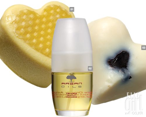 1 밤 코스메틱 서머 허니 마사지 바, 가격 미정. 2 오르간 오일. 아토피에도 좋은 마사지 오일. 6만9천원. 3 러쉬 소프트 쿠르. 탈콤한 코코아 향 오일. 1만5천9백원. |