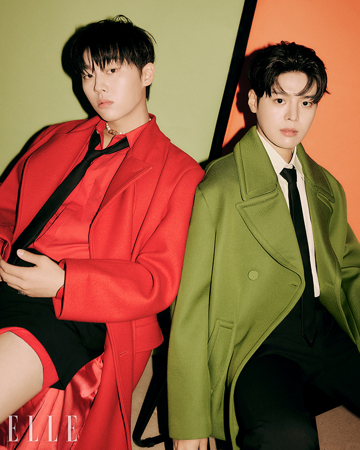 드라마 <반짝이는 워터멜론>의 두 주인공 려운과 최현욱이 <엘르>와 만났다. ‘코다(CODA; 청각장애인 양육자를 둔 청인)’인 고등학생 은결(려운)이 과거로 회귀해 10대 시절의 아버지 이찬(최현욱)과 함께 밴드를 만든다는 드라마 속 내용에 따라 화보 촬영은 활기차고 유쾌한 콘셉트로 진행됐다.