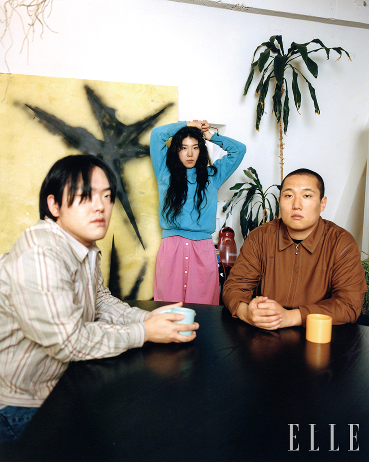 왜 지금 정규 앨범을 만들기로 결심했냐고 묻자 오메가사피엔은 “그냥”이라고 대답했다. “사실 이게 제일 솔직한 답변이에요. 정말 그냥 그러고 싶어서 만들었거든요. 의미도 없어요. 저도 그렇고 멤버 대부분이 프리 스타일로 가사를 쓰기도 하거든요. 순간 생각 나는 단어나 생각 없이 말하는 대로 혹은 당시 화두가 가사이자 곡의 주제가 되죠. 우리는 깊은 사상을 곡에 집어넣지 않아요. 그러면 언어에 갇혀 창작이 어렵거든요.” 소금이 몇 마디 덧붙였다. “우리는 이 앨범이 우리의 화합이자 서로에 대해 알아가는 과정이라고 생각해요. ‘오메가가 이런 것도 할 수 있구나, 원진 오빠가 이번에는 이런 악기를 샀네’ 같은 일상 그 자체죠. 우리가 성장하고 서로를 알아가는 좋은 에너지를 넣은 앨범이고, 특별한 아젠다는 없어요.” 정규 앨범 발매 전 공개된 1차 티저 영상에 머드 더 스튜던트가 오메가사피엔에게 ‘그래서 앨범 주제가 뭐냐’고 질문하는 장면이 나온다. 그리곤 오메가사피엔이 당장 눈앞에 보이는 ‘화투’를 말하는 장면으로 이어진다. 이처럼 상황에 따라 즉흥적이고 자유롭게 창작하는 것이 바밍타이거의 방식이다. 술에 취해 자신감 넘치는 느낌을 담은 5번 트랙 ‘Kamehameha’를 만들던 당시 정말 술에 쩔어 있었다는 bj원진의 말만 들어도 그렇다. 얼터너티브 K팝이라는 비정형화된 장르에서 자유롭고 비정형화된 방식으로 음악을 하는 바밍타이거의 정규 앨범 추천곡으로 머드 더 스튜던트는 ‘UP!’을 꼽았다. “후반부에 만들어진 곡이에요. 트랙 순서상 넣어야 해서 만들었죠. 순서를 고려해 의무적으로 만들면 부담감 때문에 곡이 덜 매력적으로 완성돼요. 근데 들어보니 너무 좋은 거예요. 일사천리로 완성했죠. 그리고 ‘Buriburi’는 신나고 재미있어서 좋아요. 그 노래를 들을 때마다 출근제로 작업할 때 멤버들과 만든 추억이 생각납니다.” 산얀 또한 ‘UP!’에 한표를 던졌다. “이번 앨범에는 특히 악기를 녹음하는 경우가 많았어요. 특히 이 곡은 4~5명의 기타 연주가 들어가요. 처음에 bj원진 그리고 머드 더 스튜던트가 연주했다가 만족이 안 돼 주변 기타리스트 친구와 두 기타리스트 ‘하세가와 요헤이’ ‘지윤해’ 씨에게 부탁했어요.”