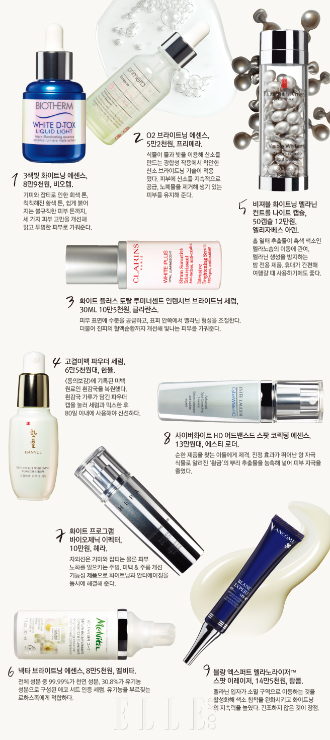 단순한 기미와 피부 톤 케어를 넘어 투명하게 빛나는 광채와 민감성 피부를 위한 저자극 포뮬러, 안티에이징 성능을 지닌 멀티 화이트닝까지. 올봄, 화이트닝 세럼이 새롭게 진화했다.