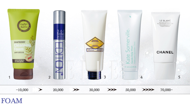 5 르 블랑 브라이트닝 폼 클렌저 맑고 환한 피부 케어의 첫 단계는 클렌징. 화이트닝 라인인 르 블랑 클렌저는 단순히 메이크업을 지우는 것에 그치지 않고 죽은 각질들을 제거해 개운한 마무리감을 전한다, 150ml 7만1천원, 샤넬.