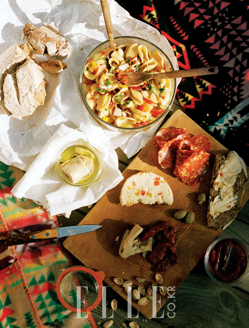 차게 먹는 파스타 샐러드는 만든 지 두세 시간 후에 맛이 잘 배었을 때 가장 맛있기 때문에 나가서 먹기 좋은 음식이다. 사람들은 캠핑만 가면 왜 꼭 평소에 찾지도 않는 시뻘건 찌개 아니면 지글거리는 고기를 먹는 걸까? 이렇게 상큼하고 신선한 메뉴도 얼마든지 먹을 수 있는데.