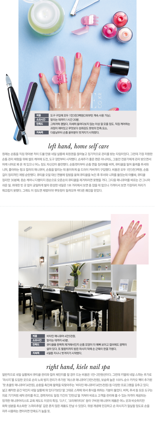누군가에게 네일 케어는 메이크업처럼 일상일 수도, 기분 전환을 위한 심리 치료일 수도 있다. 목적에 따라 허용 가능한 투자비용이 다를 듯. 최저가와 최고가 손톱 관리는 무엇이 다를까? 각각 한 손씩 직접 경험해 봤다.