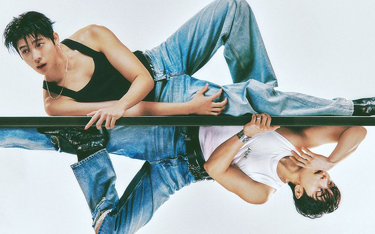 문상민이 입은 슬리브리스는 Forma. 팬츠는 Valentino. 네크리스는 Numbering. 슈즈는 Ami. 김도완이 입은 슬리브리스와 하단 벨트는 Acne Studios. 팬츠는 Recto. 슈즈는 Fear of God x Zegna. 네크리스는 Hyend. 브레이슬릿은 Takahiromiyashita The Soloist x Cody Sanderson. 링은 Chanel. 상단 벨트는 스타일리스트 소장품 .
