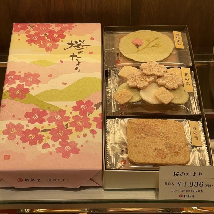센베 코너 역시 사쿠라 장식으로 화려하게 변했습니다. 고소하고 바삭바삭하게 구운 센베 위에 벚꽃 장식을 더한사쿠라 컬렉션이 불티나게 팔려 나가는 중. 과하게 달콤한 디저트를 싫어하는 부모님께 선물하면 좋겠어요.