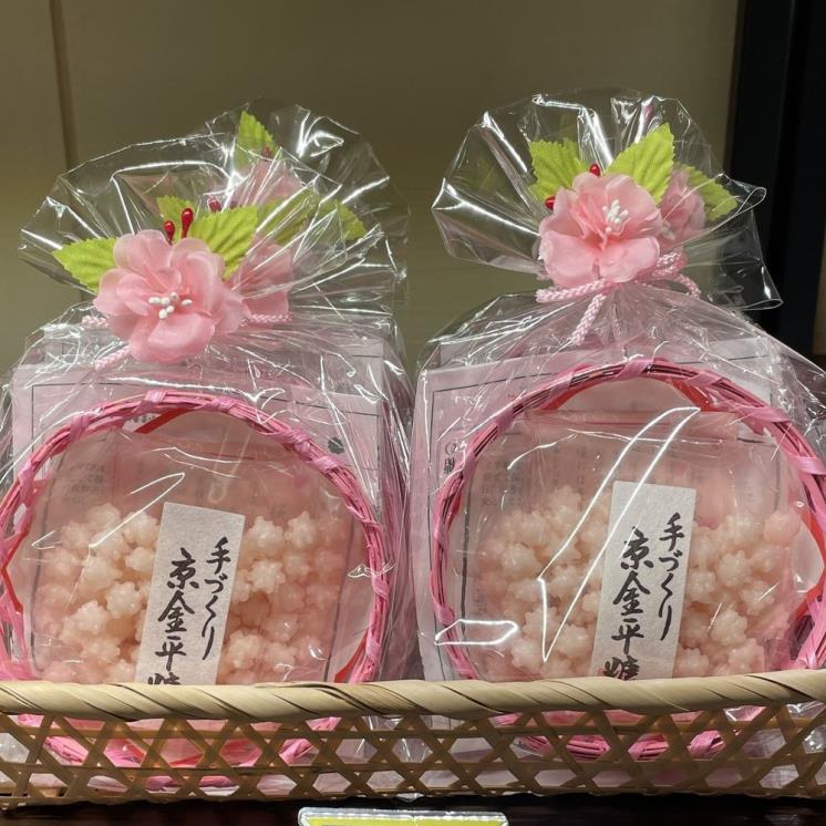 장인이 14시간에 걸쳐 수작업으로 별사탕을 만드는 ‘료쿠주안시미즈’. 교토의 아틀리에에서 공수해온 딸기 우유 빛깔의 별사탕도 판매되고 있습니다. 사쿠라 꽃 모양으로 포인트를 준 포장이 앙증맞죠? 딱딱하지 않고 입 안에서 부드럽게 부서져 식후 입가심으로 딱입니다.
