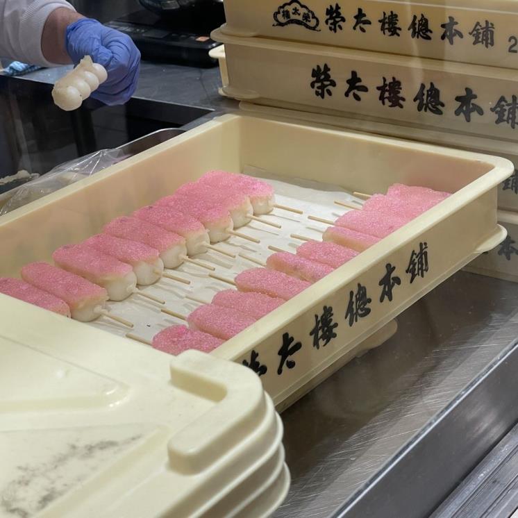 고시히카리 쌀로 만들어 쫀득쫀득한 식감으로 유명한 ‘에이타로소모토’의 당고. 천연 재료로 핑크빛 떡소를 올리고 말린 꽃잎까지 얹어 곱디고운 사쿠라 당고를 완성했습니다. 설탕을 사용하지 않았는데도 충분히 달콤하고 예쁜 비주얼 덕분에 기분까지 좋아진답니다.