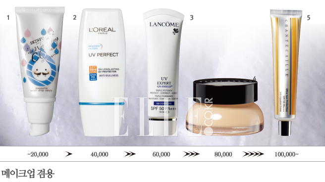 tips 두꺼운 메이크업은 답답해서 질색이라면 겸용 제품은 어떨지. 모공을 감추는 프라이머와 피부 톤을 보정하는 메이크업 베이스, 커버력을 갖춘 CC크림과 BB크림까지 종류는 무궁무진하니 평소 메이크업 패턴에 따라 선호하는 제품을 고른 다음 차단 지수를 확인하면 된다. 단, 메이크업에만 집중하다 보면 자외선 차단 권장량보다 적은 양을 바르기 쉬우니 아끼지 말고 넉넉하게 발라야 한다.