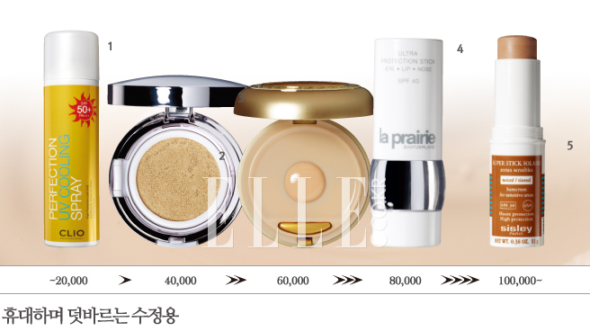 tips 자외선 차단 효과를 제대로 누리려면 수시로 도포해야 한다는 것은 익히 들어 알고 있을 터. 하지만 섣불리 덧발랐다간 공들인 화장이 뭉치거나 들뜰 수 있다. 고르게 분사돼 손댈 필요가 없는 선 미스트나 퍼프로 두드리는 팩트 타입은 든든한 해결책이 돼줄 것. 손으로 살살 녹여 톡톡 두드리는 밤 타입 스틱은 특히 눈가나 입가 등 민감한 부위에 탁월한 효과를 발휘하며, 휴대도 간편하다.