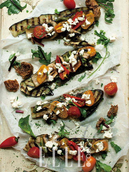 3 가지를 돌돌 말아 먹어도 좋고 오픈 샌드위치처럼 그대로 베어 먹어도 좋다. 새콤하면서 짭짤한 페타 치즈가 가지의 풍미와 훌륭하게 어울린다.