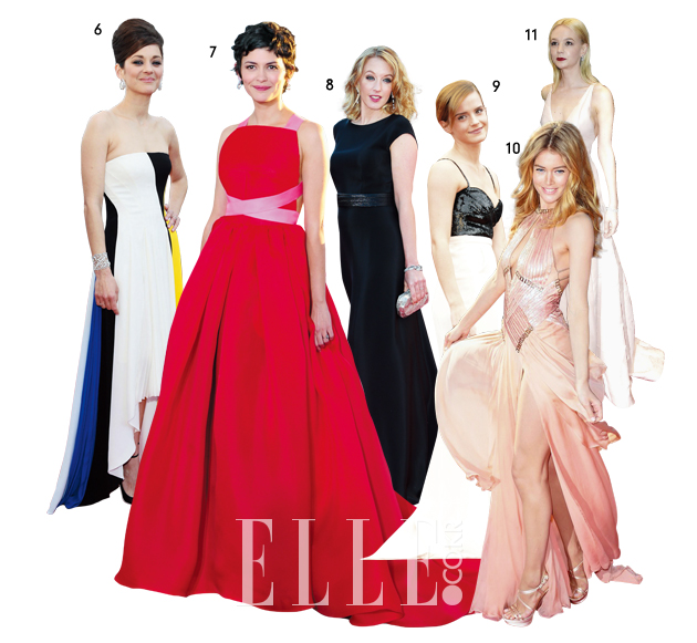 7 화려한 레드 컬러 드레스를 입은 오드리 토투. 그녀 특유의 시크함이 부한 드레스에 가려진 것이 조금 아쉽다.