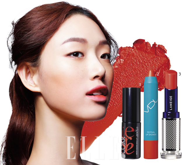 1 립스틱과 글로스, 틴트를 하나로 합친 시원한 질감의 립 스테인 워터 글로우 3호 탠저린탱고, 1만원대, 에스쁘아.