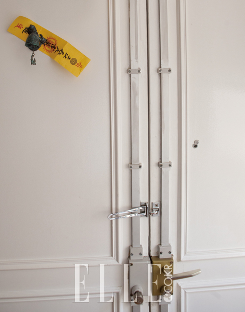 휴식도 좋지만 생각을 일으키고, 감성을 쌓아가기 위해서는 집 안에 인스피레이션 보드 하나쯤은 필요하다. 주로 벽이나 냉장고를 많이 활용하지만 문도 좋은 보드가 된다. 하지만 자주 여닫는 문이기에 많은 이미지보단 딱 하나 임팩트 있는 비주얼을 붙여두면 드나들며 내내 기억하기 좋다. 샤넬의 텍스타일 아트 디렉터 김영성은 자신의 집 거실 문에 어머니가 보내준 부적과 지인이 선물한 귀신을 쫓는다는 호랑이 장식을 매치해 한국적인 문화를 상기시킨다.