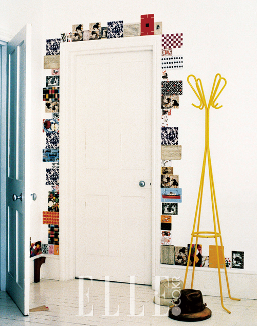 페인트나 도배를 하지 않고 문을 꾸미는 아주 간단한 아이디어. 예쁜 그림, 사진 엽서를 활용해 문 모양을 따라 패치워크하듯 붙이면 끝. 그동안 모아둔 여행 기념 엽서를 활용하거나, 벼룩시장에서 구입한 빈티지 엽서 등을 활용해도 좋지만 다양한 크기의 제품으로 지루하지 않게 붙이는 게 포인트다. 문 주위뿐 아니라 바닥 장식까지 연장할 수 있는 아이디어로 엽서를 붙이고 떼어냈을 때 벽이 상하지 않는 이중 테이프나 접착 고무를 사용해야 후일을 도모할 수 있다.