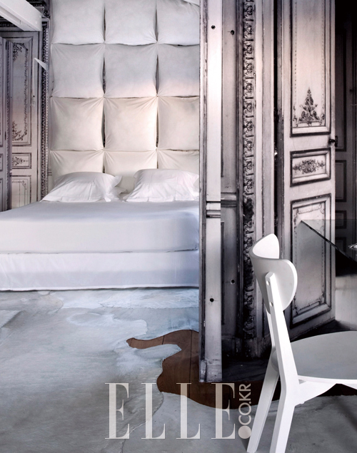 방이 너무 작거나 창문이 없다면 디자이너 마르탱 마르지엘라가 제시하는 아이디어를 눈여겨볼 것. 떼었다 붙일 수 있는 접착성 원단이나 월페이퍼에 실물 크기의 문을 프린트해 붙이면 방이 입체적으로 살아난다. 이곳은 마르지엘라가 디자인한 보르도의 레 수르스 드 코달리(Les Sources de Caudalie) 호텔의 스위트룸과 같은 효과를 내고 싶다면 코지엘(Koziel)에서 출시된 ‘Costumes De Portes’ 시리즈를 시안으로 삼아도 좋겠다.