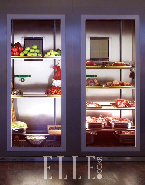 오픈 키친 레스토랑은 친숙하지만 손님에게 냉장고 속 재료를 허심탄회하게 공개하는 오픈 냉장고는 듣도 보도 못했다. 거대한 디스플레이 냉장실을 설치해 고기와 생선 상태를 프레젠테이션하는 베를린의 그릴 로열(Grill Royal) 레스토랑의 이색 인테리어는 한국 레스토랑에서도 고려해 볼 만한 컨셉트가 아닐는지. 총 4개로 나눠진 냉장실엔 각각의 문이 있고, 여기엔 작은 창이 나 있어 속을 들여다볼 수 있는 액자식 구조도 재미있다. www.bureau-n.de/Grill-Royal