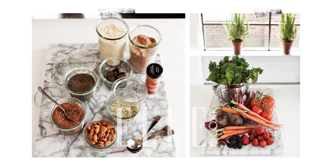 지난해 ‘디톡스 주스’로 다이어트를 한 적이 있다고 들었다. 효과는 지난해 1월 2주간 ‘안티에이징 디톡스 주스 프로그램’을 시도했다. 첫 주에는 탄수화물, 유제품, 설탕과 술을 피하는 대신 여러 가지 허브와 비타민을 섭취했고, 마시는 물의 양을 급격하게 늘렸다. 순조롭게 진행되는가 싶더니 뉴욕의 스타 셰프 마리오 바탈리(Mario Batali)가 초대한 저녁 식사에 참여하면서 급격하게 무너졌다. 잘 참아왔던 와인, 파스타, 치즈, 게다가 디저트까지 너무 맛있는 음식들을 그냥 지나칠 수 없었다.