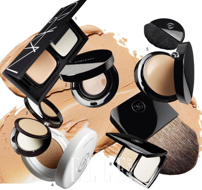 동봉된 스펀지나 브러시를 적극 활용하면 제품 하나로 여러 가지 피부 질감을 연출할 수 있으니 매장 직원에게 사용법을 전수받아도 좋을 듯. 테스트 결과 가장 손이 많이 가는 제품은 벨벳처럼 보드라운 피부 결을 만드는 나스 래디언트 크림 컴팩트 파운데이션. 뚜껑이 이중으로 부착돼 내용물에 먼지가 달라붙지 않는 것도 장점이다. 방금 화장을 마친 듯 얇고 섬세하게 표현되는 조르지오 아르마니 마에스트로 퓨전 메이크업 컴팩트 역시 휴대가 어려운 브러시를 동봉한 영리한 제품. 해사한 안색을 연출하고 싶다면 비디비치 퍼펙트 페이스 파운 밤을 권한다. 잡티 커버력은 떨어지지만 모공 커버력이 뛰어나 도자기처럼 매끈하게 표현되니까!