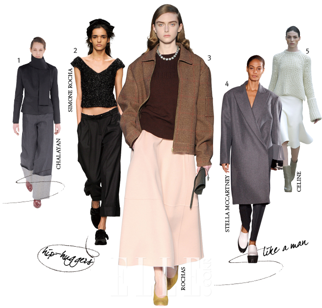 이번 시즌엔 확실히 오버사이즈 팬츠가 대세다. 하지만 캐서린 헵번의 쿨함이 자칫 MC 해머 스타일의 어정쩡함으로 비춰질 수도 있으니 조심할 것. 이런 의미에서 시몬 로샤는 완벽한 실루엣의 팬츠를 선보였다. 히프에 나지막이 걸쳐지는 로-라이즈와 크롭트된 길이는 보이시한 무드에 페미닌한 요소를 더하며 완벽한 궁합을 자랑했다.