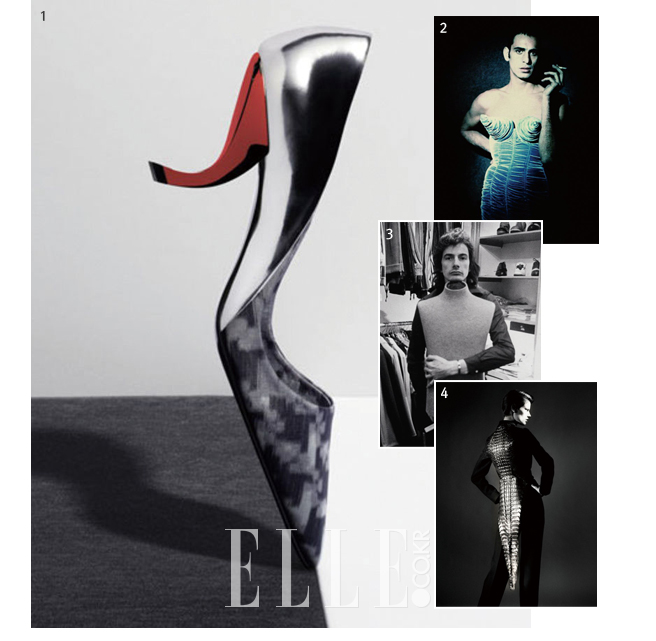 1 로저 비비에 회고전의 대표작인 콤마 힐 스틸레토. 2 장 폴 고티에의 첫 해외 회고전. 3 1976년부터 현재까지의 디자인 인생을 기록한 폴 스미스 회고전. 4 파리 패션위크 기간에 개막한 아제딘 알라이아 회고전.