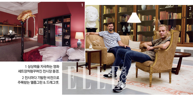 런던 빅토리아 앤 알버트(V&A) 박물관이 ‘가상의 건축가’의 수상한 저택으로 변신했다. 현재 미술계에서 가장 잘나가는 듀오 아티스트 엘름그린(Elmgreen)과 드래그셋(Dragset)의 <Tomorrow>전. 인생의 황혼기를 맞은 한 건축가가 자신의 오래된 집을 처분해야 할 상황에 놓인다는 설정에 따라 박물관 내 5개의 전시장을 V&A의 소장품 100여 점과 그들의 설치미술 작품으로 꾸몄다. 관객들이 자유로이 거닐며 저마다의 각본을 상상하게 만드는 영화 같은 전시, 참신하고 근사하다.