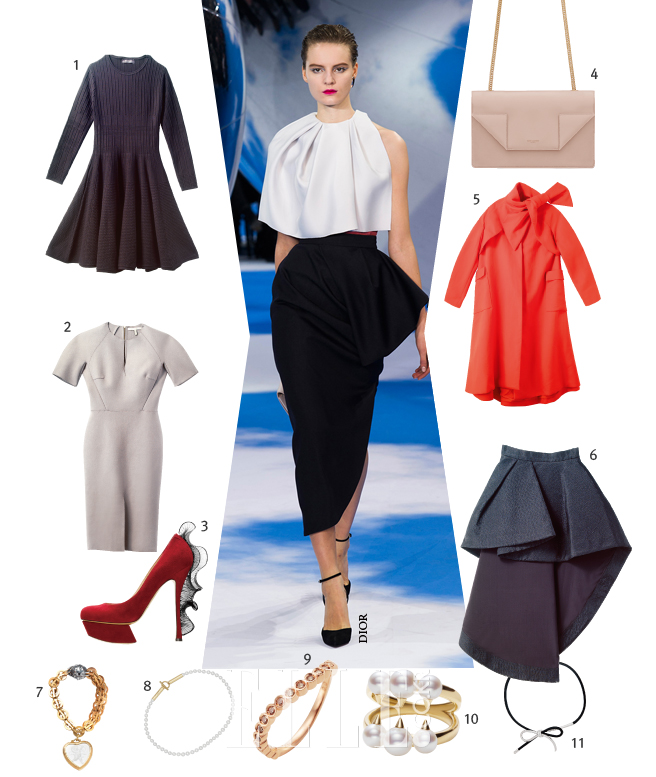 6 러플 디테일의 실루엣이 우아한 무드를 자아내는 언밸런스 스커트. 가격 미정, 디올.