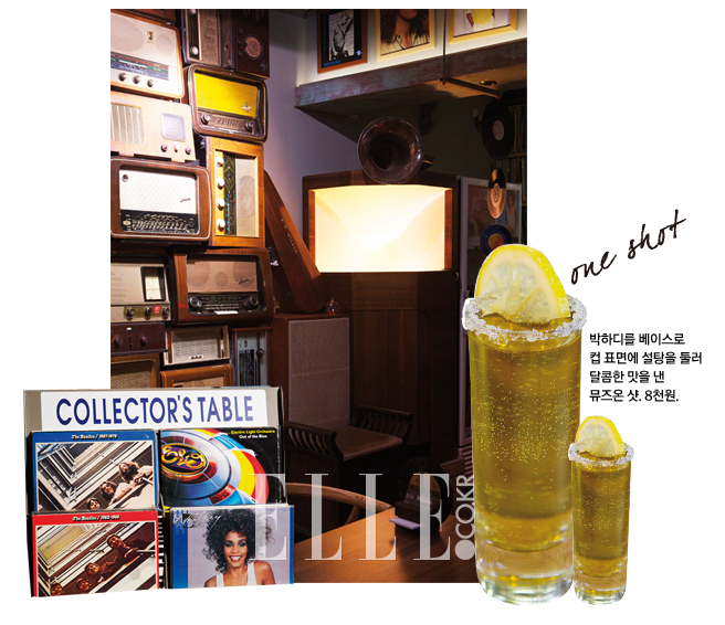 용산에서 30년 넘게 레코드 숍을 운영 중인 오너가 LP의 매력을 전파하고자 문을 연 뮤즈온. 음악에 대한 남다른 열정으로 영국에서 공수해 온 남미, 쿠바 등의 희귀 앨범을 다량 보유한 것이 가장 큰 특징이다. 영국 벼룩시장에서 사 모은 트랜지스터 라디오, 스피커, 턴테이블 등 추억의 소품은 이곳을 빛나게 하는 또 다른 매력. 국내 LP 바에서 흔히 찾기 어려운 50년대에 생산된 보이트(Voight), 작센 베르크(sachsen werk) 스피커로 LP 음반을 플레이해 주니 ‘그때 그 시절’로 돌아간 듯한 느낌에 흠뻑 빠져 음악을 감상할 수 있다. ADD 강남구 신사동 544-16 TEL 514-4541