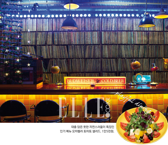 작고 개성 강한 가게가 운집한 이태원 경리단길과 녹사평역 사이에 자리 잡은 LP 바 바이닐 앤 펍은 요즘 가장 ‘힙’하기로 입소문 난 공간. 최근 뉴욕, 런던 등지에서 떠오르는 LP 바의 분위기를 옮겨오기 위해, 음악 감상 외에도 뮤지션들의 공연, 영화 상영 등 다양한 문화 프로그램을 마련했다. 주로 80년대의 뉴웨이브, 소울 펑크, 2000년대의 인디 록 장르의 뮤직이 플레이된다. LP 바로서는 독특하게도 위스키, 와인이 아닌 수제 ‘에일 맥주’를 마실 수 있는 트렌디한 장소다. ADD 용산구 이태원동 557 TEL 790-5979