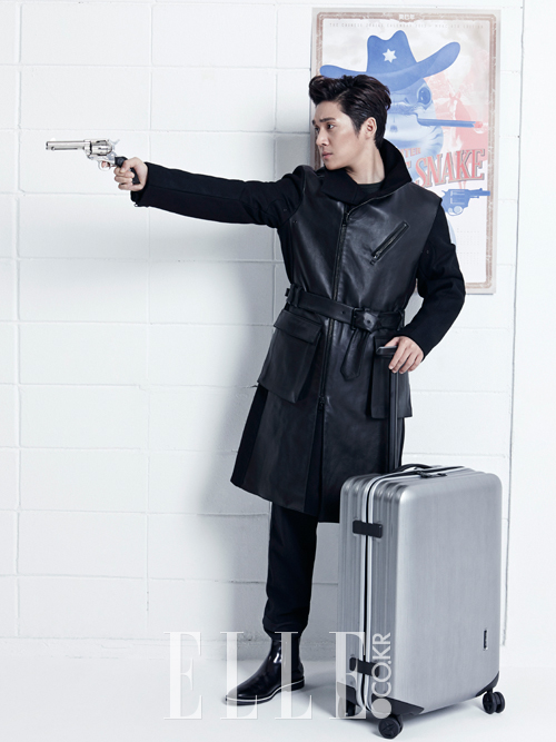 가볍고 미니멀한 디자인의 이노바 캐리어는 Samsonite. 블랙 레더 코트와 풀오버, 팬츠는 모두 Salvatore Ferragamo. 블랙 컬러 부츠는 Tod’s.