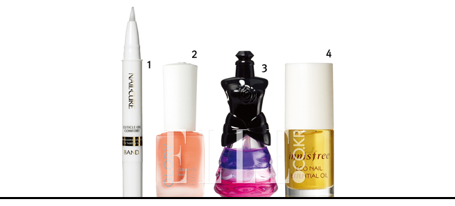 쉽게 깨지고 갈라지는 연약한 손톱에는 네일 오일이 즉효약. 네일 오일은 손톱 위에 보호막을 입혀 손상과 건조함을 예방하고 건강한 손톱의 성장을 돕는다. 하루에 한두 번, 물기를 제거한 손톱과 큐티클에 제품을 바르고 지문으로 살살 문지르면 울퉁불퉁한 손톱 골 사이사이까지 더 깊숙이, 빠르게 흡수된다는 사실! 특히 잠자기 전에 바르면 더욱 효과적이며 생활하는 데 불편하지 않다. “집에서 혼자 푸셔나 니퍼 같은 도구를 사용해 큐티클을 제거했다간 자칫 상처 입기 쉽죠. 거즈에 네일 오일을 묻혀 엄지손가락에 씌운 후 큐티클 부분을 좌우로 한 번 밀어주면 보기 흉한 큐티클만 부드럽게 제거됩니다.” 반디 홍보팀 장유미의 팁.