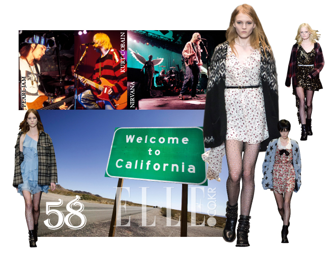 S/S 시즌을 시작으로 생 로랑 시대를 연 에디 슬리먼. 그에 대한 호불호는 여전하지만 중요한 건 이번 시즌 패션계는 그가 선보인 캘리포니아 그런지 룩이 지배적이라는 것. 그런지 음악과 패션의 발원지인 58카운티, 캘리포니아의 자유를 담은!