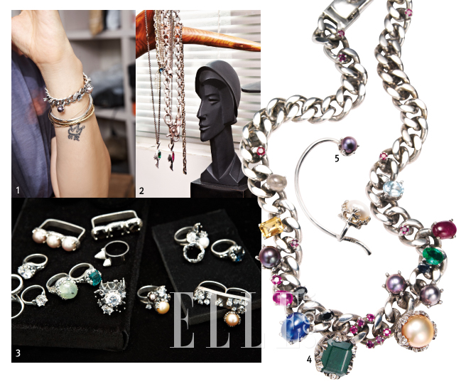 홍보대행사를 운영하고, 스타일리스트로 일하다 주얼리 디자이너에 도전한 이력이 특이하다 30대 중반까지 다른 일을 하다 패션계에 들어오고 약 17년 정도 흘렀다. 다른 사람들처럼 어떤 특별한 기획을 가지고 HR을 시작한 건 아니었다. 시간이 나면 여행을 떠날 만큼 여행을 워낙 좋아하는데다 그때마다 젬스톤을 사왔던 게 주얼리를 시작하는 계기가 됐다. 내가 사온 것들을 어떻게 엮어볼까 하다가 체인과 연결해서 주얼리를 만들어봤는데 볼드하고 아름다워 마음에 들었다. 주얼리 디자인을 배운 적이 없어서 혼자 공부하고 경험하며 계속 만들어봤더니 주위에서도 예쁘다고 해 얼떨결에 이니셜 HR을 붙여 론칭하게 된 거다. 처음에 멀티숍 쿤에서 바잉을 했고, 다이아몬드로 만든 해골 모양의 주얼리는 분더숍 맨에서 바잉하는 등 반응도 좋았다. 그렇게 주먹구구로 시작한 HR이 이제 10년이 됐다. 뭐든 하면 10년 이상 해야 한다는 게 내 신념인데, 연습도 많이 했고, 이제 자신 있게 내 주얼리를 내보여도 된다는 시점이라고 생각한다. 지난해 말부터 홍보대행사와 스타일링 일은 다 덮어두고 주얼리에만 전념하고 있다.