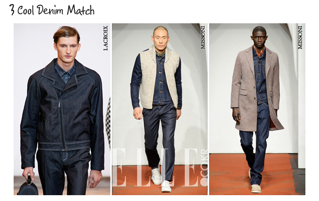 일명 ‘청+청 패션’은 지금까지 꾸준히 사랑 받아 온 복고패션 중 하나다. 데님에 데님을 매치한 단순하기 그지 없는 스타일 공식이지만 성공적인 청청 패션을 위해선 센스 있는 한 수가 필요하다. 데님 아우터의 디자인을 바꿔보는 것(레더재킷이나 베이스볼 재킷 디자인 등 모두 좋다). 그리고 데님팬츠의 패턴을 가미하는 방법(잔잔한 체크패턴이나 페이즐리 패턴 또는 도트무늬 등). 마지막으로 클래식한 아이템을 더해 레트로 무드를 절제하는 것까지!